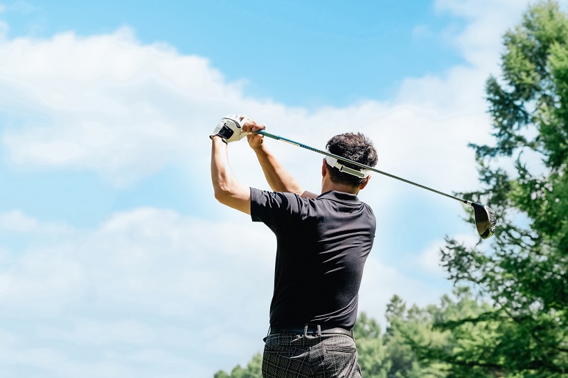 ショットをする前にボールの後方(飛球線)から的を絞り込んだあとはプレショットルーティーン(ボールを打つまでの手順)にそって「素振り」、そして構えを作り、ショットに入っていきます。